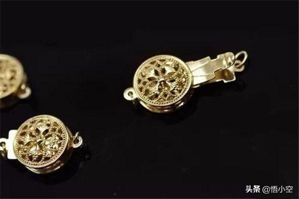 5.鱼尾扣 这种扣子一般都会用于珍珠项链。只要把小钩子挂到鱼形的接扣上,就可佩戴。缺点是不能承受很重的金属物件。
