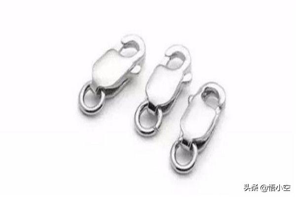 6.龙虾扣 这种项链扣是我们平常最常见的,因形状酷似龙虾,所以得名,使用范围十分广泛。形状和种类也比较多,如圆形扣。一般制作材料为各种金属。这种扣多见于手链,方便于调节手链的大小。在时尚珠宝中,被设计师们广泛的运用。缺点就是外形不够美观,可装饰性太小,基本不会用在高级珠宝中。